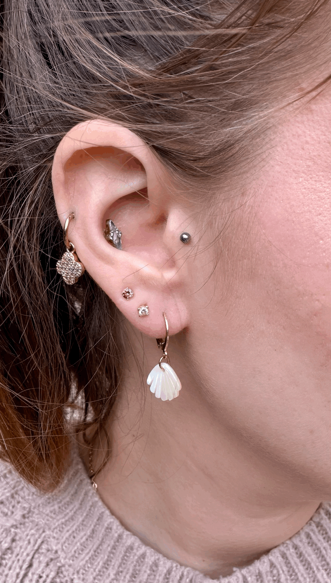 Boucles dormeuses ornées d'un délicat pendentif coquillage. Finement travaillées, elles capturent tout le charme de l'océan et la douceur du sable doré. Leur design raffiné apporte une touche bohème chic, parfaite pour illuminer tes tenues du quotidien.