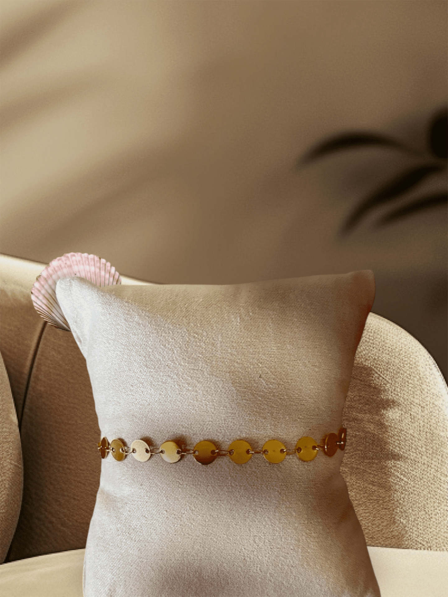 Le bracelet "Hatysa" se compose d'une chainette gaufrette en acier inoxydable doré.