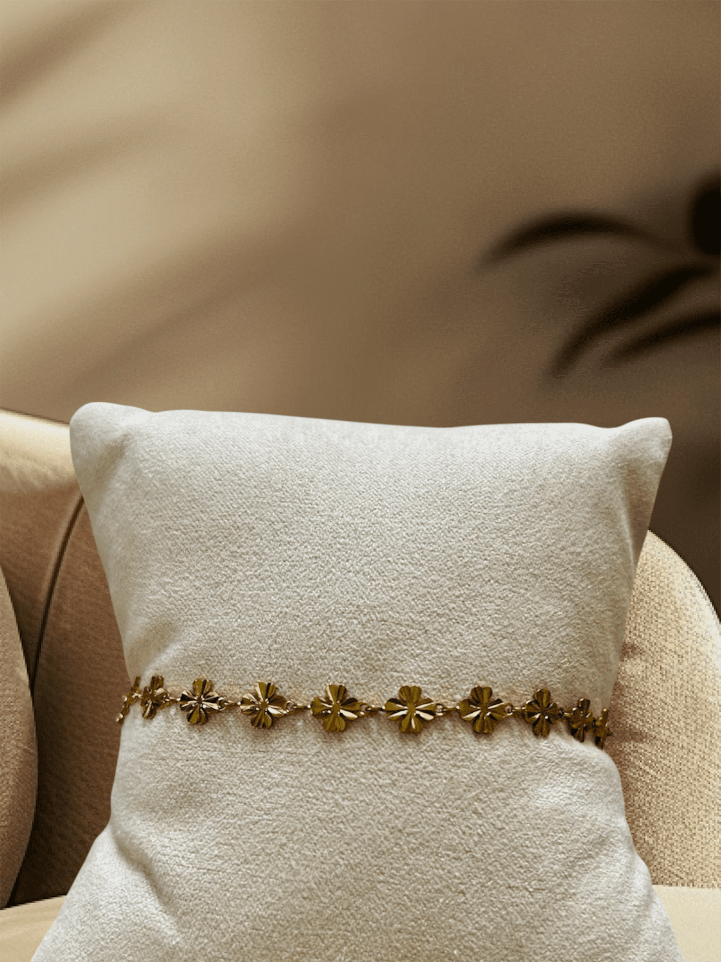 Un bijou raffiné qui capture la délicatesse des fleurs et l'éclat doré. Ses motifs fleuris apportent une touche de douceur et de féminité, comme un petit bouquet à porter au poignet. Il est en acier inoxydable doré.