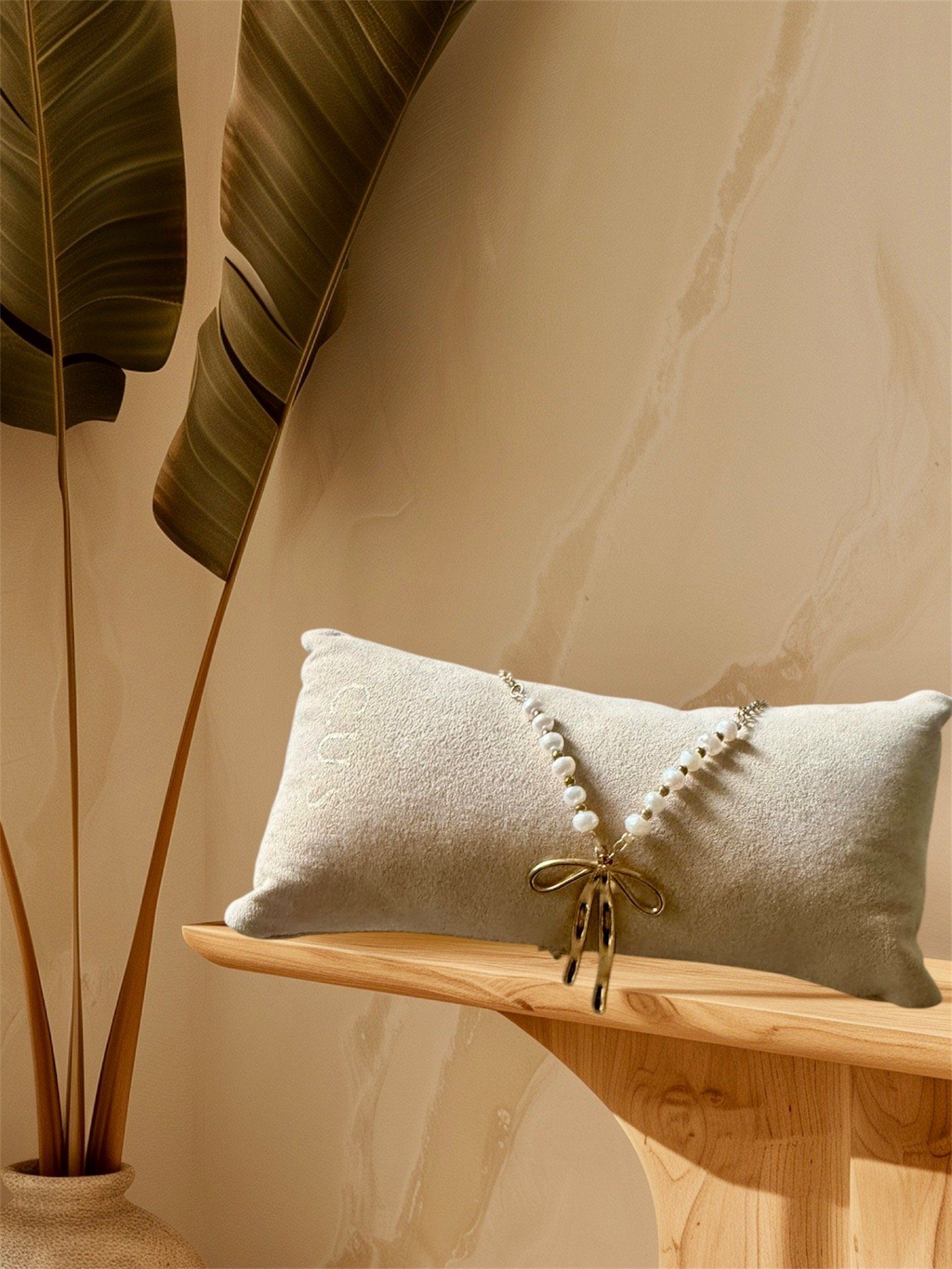 Ce collier avec un pendentif noeud de papillon est une pièce forte et féminine qui attire immédiatement le regard. La chaîne en acier inoxydable, résistante et durable, est sublimée par de véritables perles d'eau douce, chacune unique par sa forme.