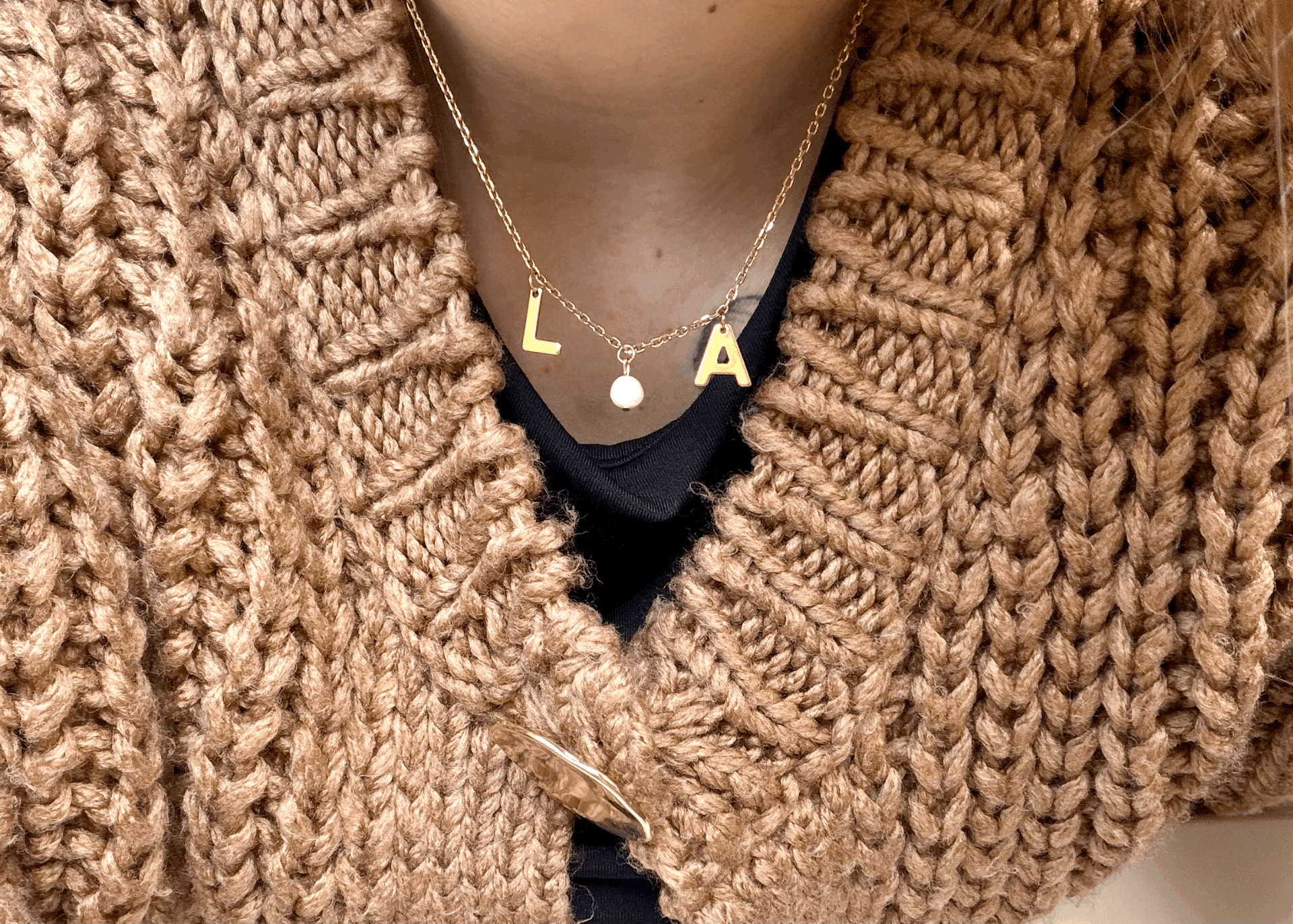 - Ou simplement des initiales précieuses, séparées par des perles d'eau douce.